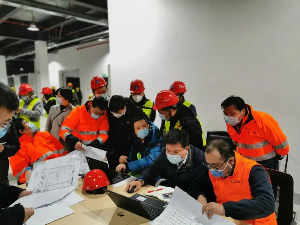 中船九院公司領導帶領項目團隊連續多日通宵在現場工作,及時協調工地各種情況,與集團公司相關部門并肩作戰、及時溝通,提高工作效能;同時堅持實時優化設計,協調工程建設。項目設計負責人、中船九院副總建筑師王川第一時間組織團隊明確職責分工,確定了現場設計、后方設計、現場管理、外場支持等多專業協同配合機制,確保多條線同時作戰、運作高效。總工程師黃延驅車前往長興島專送工程保障設備,長興島實行“只進不出”,他就直接加入現場設計團隊,10天沒有下島。設計團隊中三位女設計師沈清清、胡雁、沈峻,更是巾幗不讓須眉,創造性地解決了暖風系統設計等一系列難題,堅守一線直到項目最終交付。項目管理團隊的戴鳳波、徐詠春、欒海林、王后軍、屈杰、倪冬輝等人把現場當作家,3天只在賓館住了3個小時,其余時間都在車上、辦公桌上度過。項目部顧建章、汪凱則協調運輸通行資源,解決了建設期間工程人員的基本飲食問題。與此同時,還有更多的人在后方作戰斗支撐,中船九院建筑一院院長曾志堅迅速組織本部設計團隊,緊急將居家辦公的相關專業骨干召回,組成了包括張瓊、瞿駸、郭鳳群、李嘯、蔣斌等18名骨干在內,建筑、結構、水、電、風、經濟各專業齊全的團隊。之后因項目需要,胡雁、瞿革、瞿駸上島加入現場設計團隊。