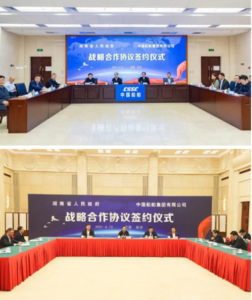 4月13日,中國船舶集團有限公司與湖南省人民政府通過“云簽約”方式簽署戰略合作協議。中國船舶集團黨組書記、董事長雷凡培,黨組副書記、總經理楊金成,黨組成員、副總經理盛紀綱,湖南省委書記、省人大常委會主任許達哲,省委常委、省委秘書長張劍飛,省委常委、省國資委黨委書記姚來英出席簽約儀式。中國船舶集團黨組成員、副總經理錢建平,湖南省人民政府副省長陳飛分別代表雙方在協議上簽字。簽約前,雙方圍繞共同服務國家戰略、深入推進雙方戰略合作進行了交流。