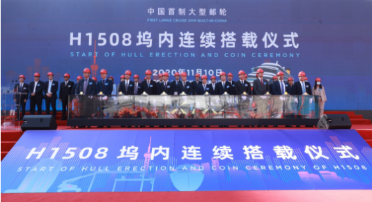 大型郵輪工程是中國船舶集團貫徹習(xí)近平總書記重要指示精神、落實國家戰(zhàn)略、滿足人民美好生活需要的重大舉措,也是中國船舶集團強化科技創(chuàng)新、促進(jìn)轉(zhuǎn)型升級、推動高質(zhì)量發(fā)展的一號工程。2018年11月6日,中國船舶集團與美國嘉年華集團、意大利芬坎蒂尼集團在首屆中國國際進(jìn)口博覽會上正式簽訂2+4艘13.5萬總噸Vista級大型郵輪建造合同,并舉行了中國船舶集團大型郵輪項目工程正式啟動儀式。這是我國首次簽訂真正意義上的大型郵輪建造合同,開啟了中國船舶工業(yè)建造大型郵輪的新時代。2019年10月18日,中國首制大型郵輪在外高橋造船正式開工點火進(jìn)行鋼板切割,全面進(jìn)入實質(zhì)性建造階段。一年多來,在中國船舶集團的堅強領(lǐng)導(dǎo)下,在中船郵輪科技發(fā)展有限公司、中船第九設(shè)計研究院工程有限公司、上海船舶工藝研究所等兄弟單位的大力支持下,外高橋造船經(jīng)受住了新冠肺炎疫情的洗禮和考驗,克服了物資采購、薄板車間流水線建設(shè)滯后等一系列困難,一步一個腳印,如期實現(xiàn)了塢內(nèi)連續(xù)搭載總裝的里程碑節(jié)點。