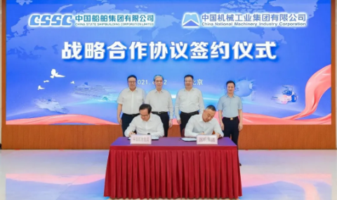 6月22日,中國船舶集團有限公司與中國機械工業集團有限公司在京簽署了戰略合作協議。中國船舶集團黨組書記、董事長雷凡培,黨組副書記、總經理楊金成,黨組成員、副總經理錢建平,國機集團黨委書記、董事長張曉侖,黨委副書記、總經理吳永杰,黨委常委、副總經理白紹桐出席了簽約儀式。楊金成、吳永杰分別代表雙方簽約。