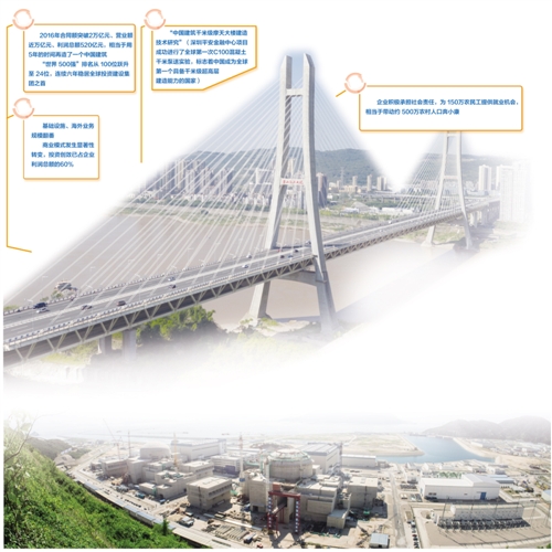 黨的十八大以來的5年,中國建筑連續(xù)5次獲得國務(wù)院國資委中央企業(yè)負(fù)責(zé)人經(jīng)營業(yè)績考核A級(jí),任期考核蟬聯(lián)“業(yè)績優(yōu)秀企業(yè)”榮譽(yù)稱號(hào);5年來,中國建筑在財(cái)富“世界500強(qiáng)”排名從100位躍升至24位;5年來,中國建筑連續(xù)穩(wěn)居全球投資建設(shè)集團(tuán)之首,獲得標(biāo)普、穆迪、惠譽(yù)等國際三大評(píng)級(jí)機(jī)構(gòu)信用評(píng)級(jí)A級(jí),為全球建筑行業(yè)最高信用評(píng)級(jí)。自1982年組建以來,中國建筑實(shí)現(xiàn)“每10年多環(huán)比增長10倍”的快速發(fā)展目標(biāo)。2016年,中國建筑合同額突破2萬億、營業(yè)額近萬億、利潤總額520億,營業(yè)收入、利潤總額分別位居國務(wù)院國資委管理的中央企業(yè)第4位、第5位,相當(dāng)于用5年的時(shí)間再造了一個(gè)中國建筑。