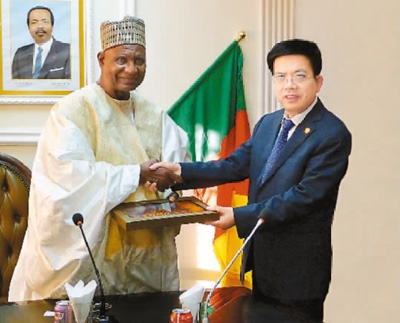 陜西建工集團黨委書記、董事長、總經(jīng)理張義光(右)拜會喀麥隆旅游部長貝洛?布巴?邁加里先生(藺進士 攝)