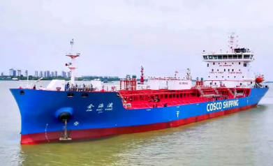 近日,我國西南地區建造的噸位最大船舶13800噸不銹鋼化學品船“金海瀛”號交付。該船總長約129米、型寬22米,型深11.8米,滿載載重噸約13800噸,可裝載二類化學品和成品油,入級CCS船級社。