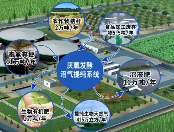 沼氣一部分用于系統保溫,富足部分進行提純制備生物天然氣,綠色可再生天然氣并入余江區市政燃氣管網銷售,進入千家萬戶,點燃節能減排生活。
