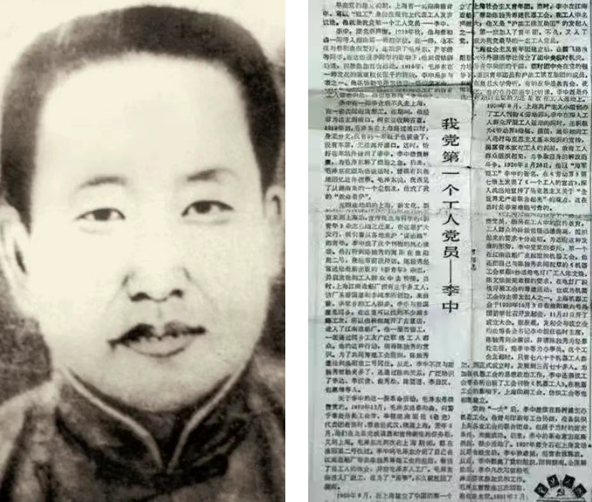 1920年8月,上海共產黨早期組織成立,積極建立工人組織。1921年,李中由社會主義青年團團員轉為中國共產黨黨員,成為中國共產黨第一位工人黨員。
