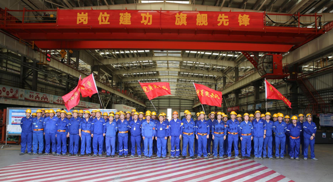 武昌造船組織80個基層黨支部設立91個黨員示范崗、劃分50個黨員責任區、建立57個黨員突擊隊,在100余個重點項目生產現場和關鍵重點工序生產機臺,構筑起45個矩陣式黨員協同攻堅堡壘點位。落實重大工程項目“揭榜掛帥”和“賽馬”制,按照平行立項、重點聚焦、優中選優要求,征集并發布涵蓋47個重點項目的《基層黨組織書記“揭榜掛帥”項目榜單》,公開亟需攻克的19項關鍵技術和28項生產經營重點管理任務,通過“目標導向、到點驗收、獎懲并重”契約機制,推動重點產品保節點和應用產業提質增效領域難點難題得到有效解決。深入開展以“定目標、定任務、定星級,亮標準、亮身份、亮行動”為主要內容的“三定三亮”活動,按照“四個一流”標準,設立10個科技攻關小分隊、15個技能大師流動服務站和20個“五星級”服務窗口,常態化實施聯合技術攻關、工藝工法指導和“一站式”窗口服務,通過技術創新、數字賦能和精益管理,持續提升節拍化生產和穿透式管理能力。