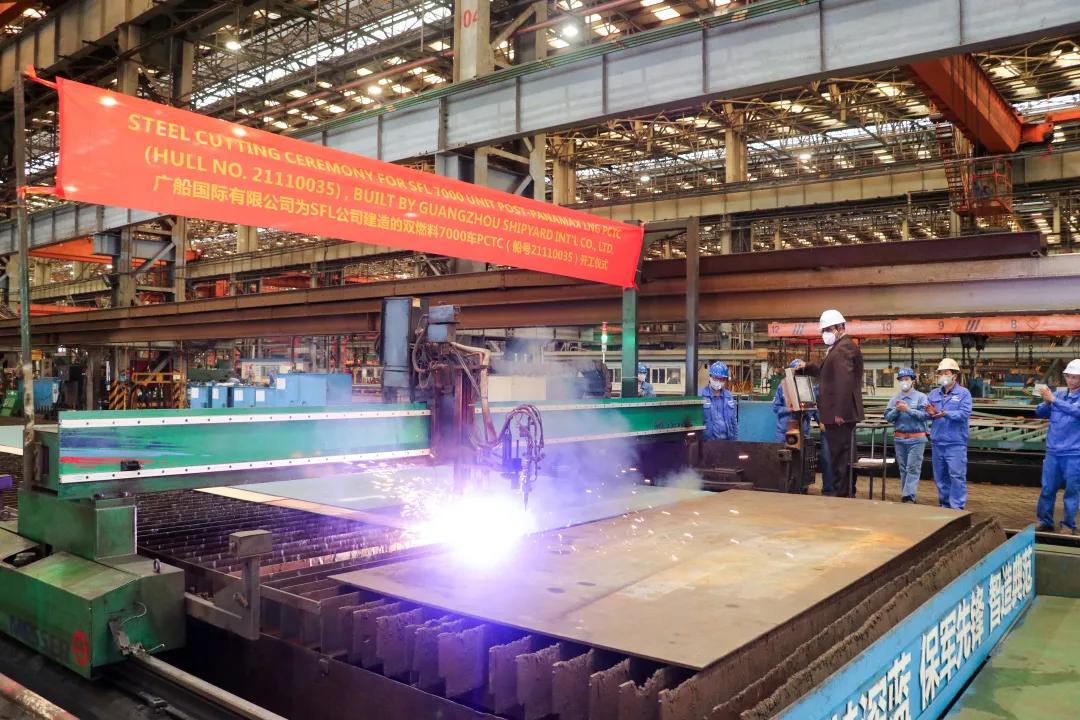 2月18日,廣船國際為挪威SFL公司建造的7000車雙燃料汽車運輸船(PCTC)首制船舉行開工儀式,這是華南地區建造的首艘雙燃料汽車運輸船,也是廣船國際春節后開工建造的第一艘船。