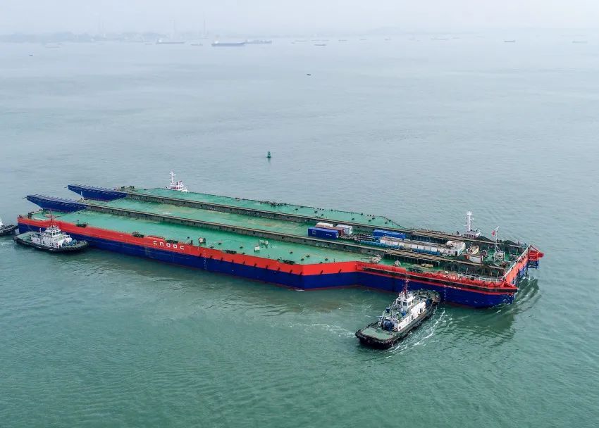 改造后的“海洋石油229”號(hào)導(dǎo)管架運(yùn)輸下水能力從30000噸提升至38500噸,可滿足高達(dá)302米、重達(dá)3萬噸的“海基一號(hào)”裝船、運(yùn)輸?shù)刃枨蟆?