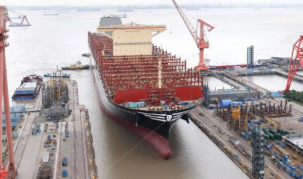 10月11日上午,中國船舶集團旗下滬東中華為地中海航運公司建造的第2艘24100TEU超大型集裝箱船(H1865A)在長興造船一號船塢順利出塢。