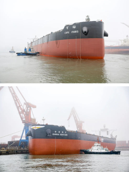 1月12日,中國船舶集團旗下北海造船2號塢21萬噸16號、23號散貨船出塢,順利實現(xiàn)大節(jié)點計劃,迎來2023年開門紅。