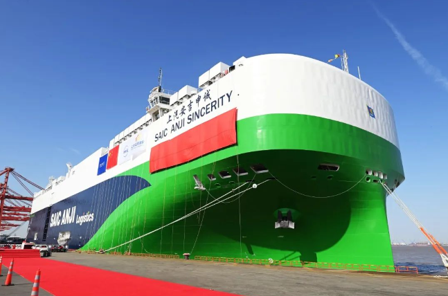 1月17日,由上船院設計,江南造船聯合中船貿易為上汽安吉物流股份有限公司建造的7600車位LNG雙燃料遠洋汽車運輸船系列船首艘正式被命名為“上汽安吉申誠”,并開啟了她的首航之旅。