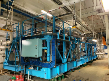 中國船舶集團七一一所自主研制的該船液貨系統的核心設備—LNG深冷式再液化裝置,歷時3年的技術攻關,突破多項關鍵技術,成功開發了大功率磁懸浮壓縮/膨脹機組,實現零下175℃的高效大冷量輸出。
