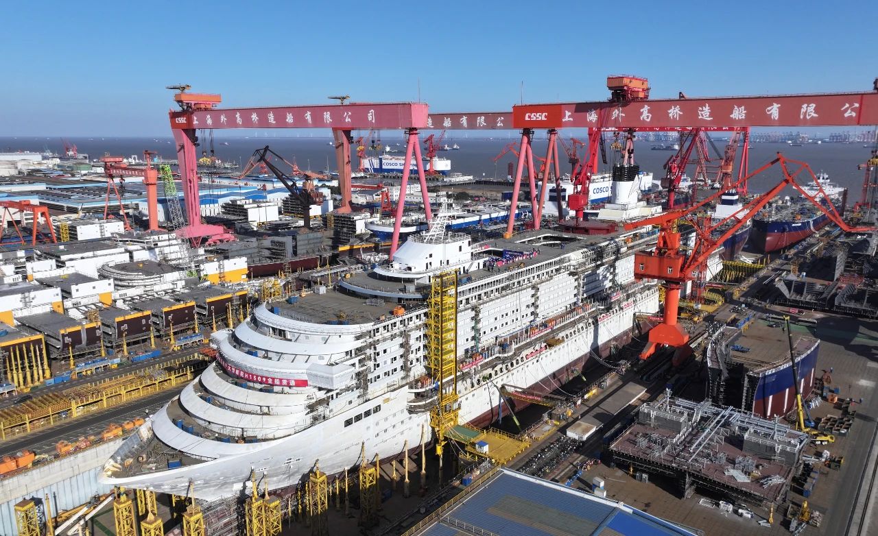 1月15日,第二艘國產(chǎn)大型郵輪“愛達(dá)·花城號”在中國船舶集團(tuán)旗下外高橋造船實現(xiàn)全船貫通的里程碑節(jié)點,全面轉(zhuǎn)入全船內(nèi)裝工程、設(shè)備、系統(tǒng)調(diào)試下半場。