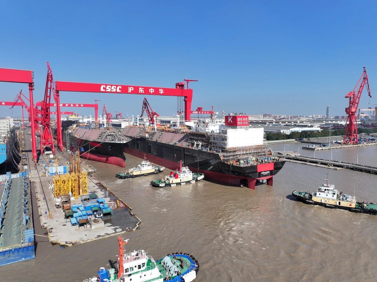 目前滬東中華手持LNG運輸船訂單超過50艘,累計完成交付54艘,同時在建LNG運輸船達到創紀錄的24艘。滬東中華將進一步推進智能設計、精益生產,將效率革命引入產業深海,向著年內交付10艘以上大型LNG運輸船的目標堅定前進。