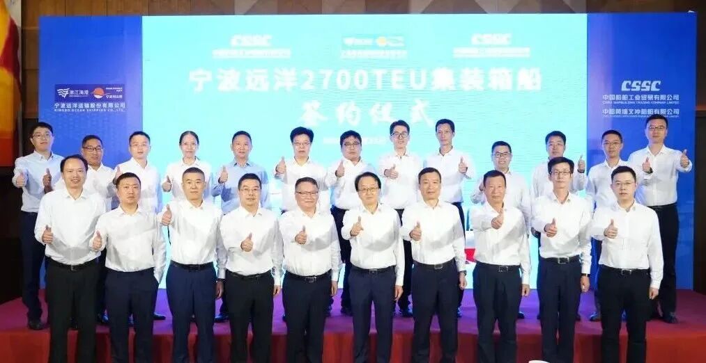 10月21日,中船集團旗下黃埔文沖聯合中船貿易,與寧波遠洋運輸股份有限公司正式簽署4艘2700TEU集裝箱船的建造合同。此次簽約的集裝箱船均由中船集團旗下上船院設計,采用先進的設計理念和環保技術,以滿足寧波遠洋對船舶高效、經濟、環保的要求。
