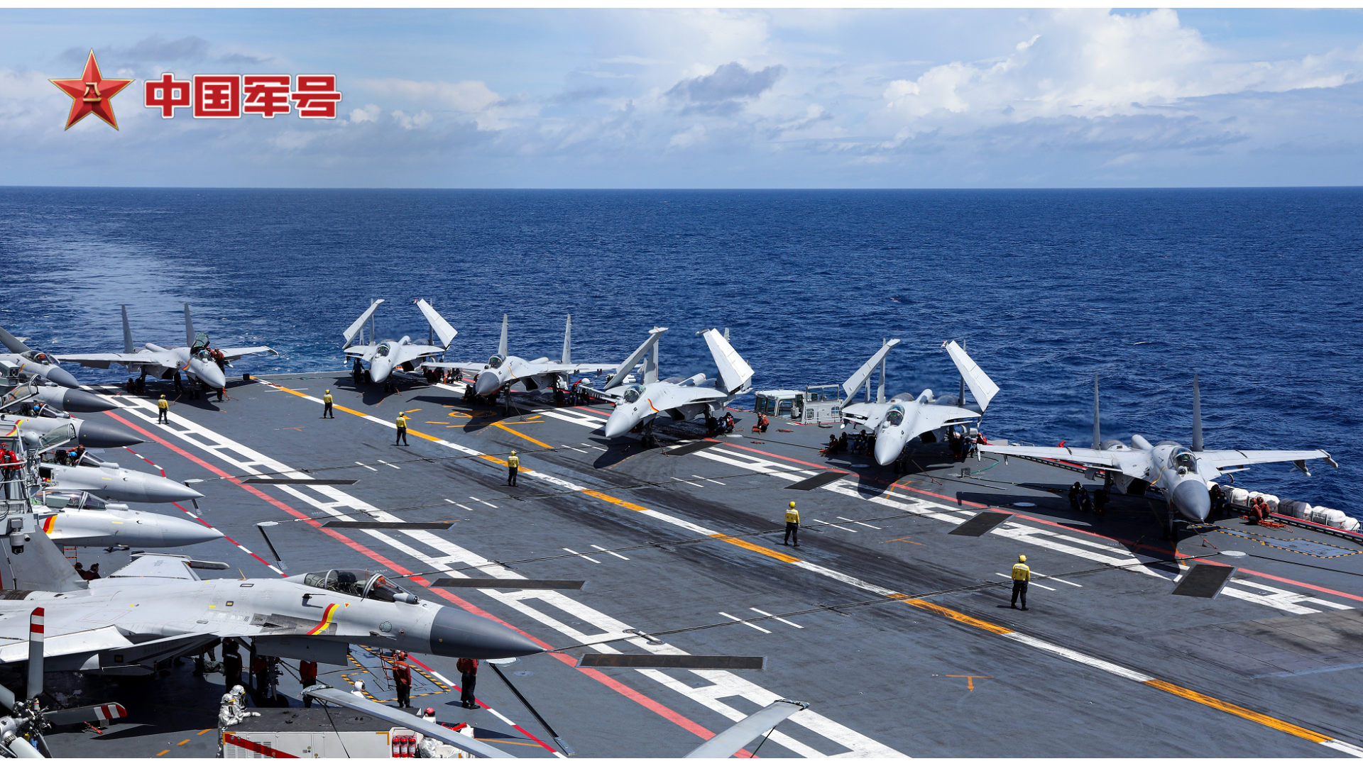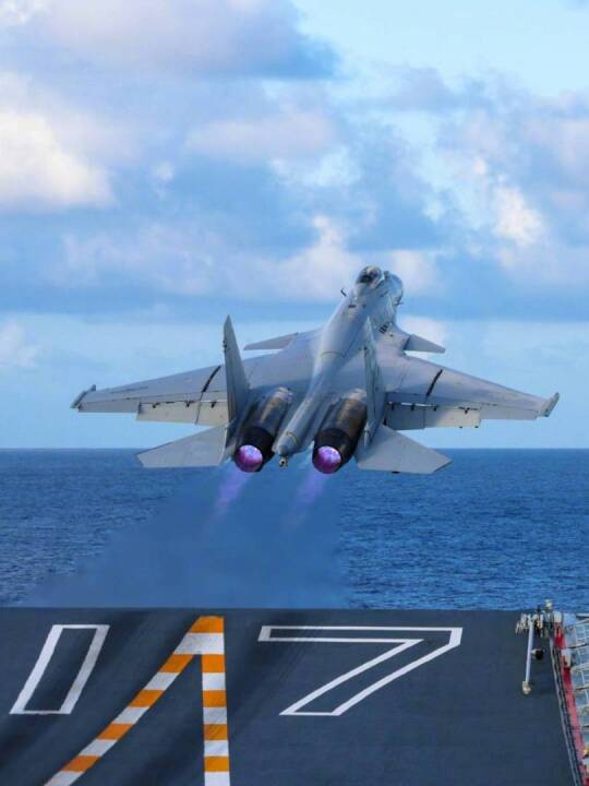 2024年10月,遼寧艦、山東艦編隊(duì)首次開展雙航母編隊(duì)演練。殲-15戰(zhàn)機(jī)組成楔形編隊(duì)飛過雙航母編隊(duì)上空。