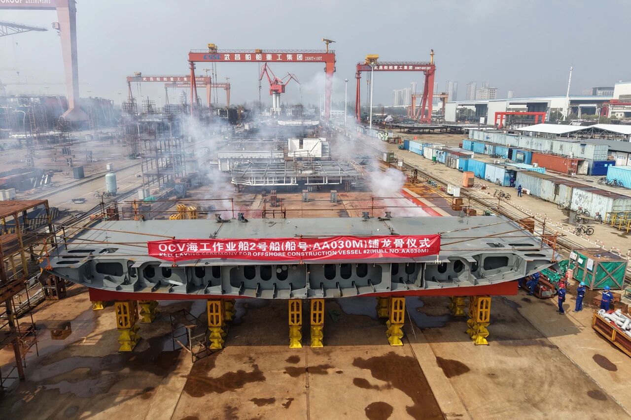 由武昌造船承建的海工作業(yè)船2號船順利達成上船臺節(jié)點,正式進入船臺連續(xù)搭載階段。