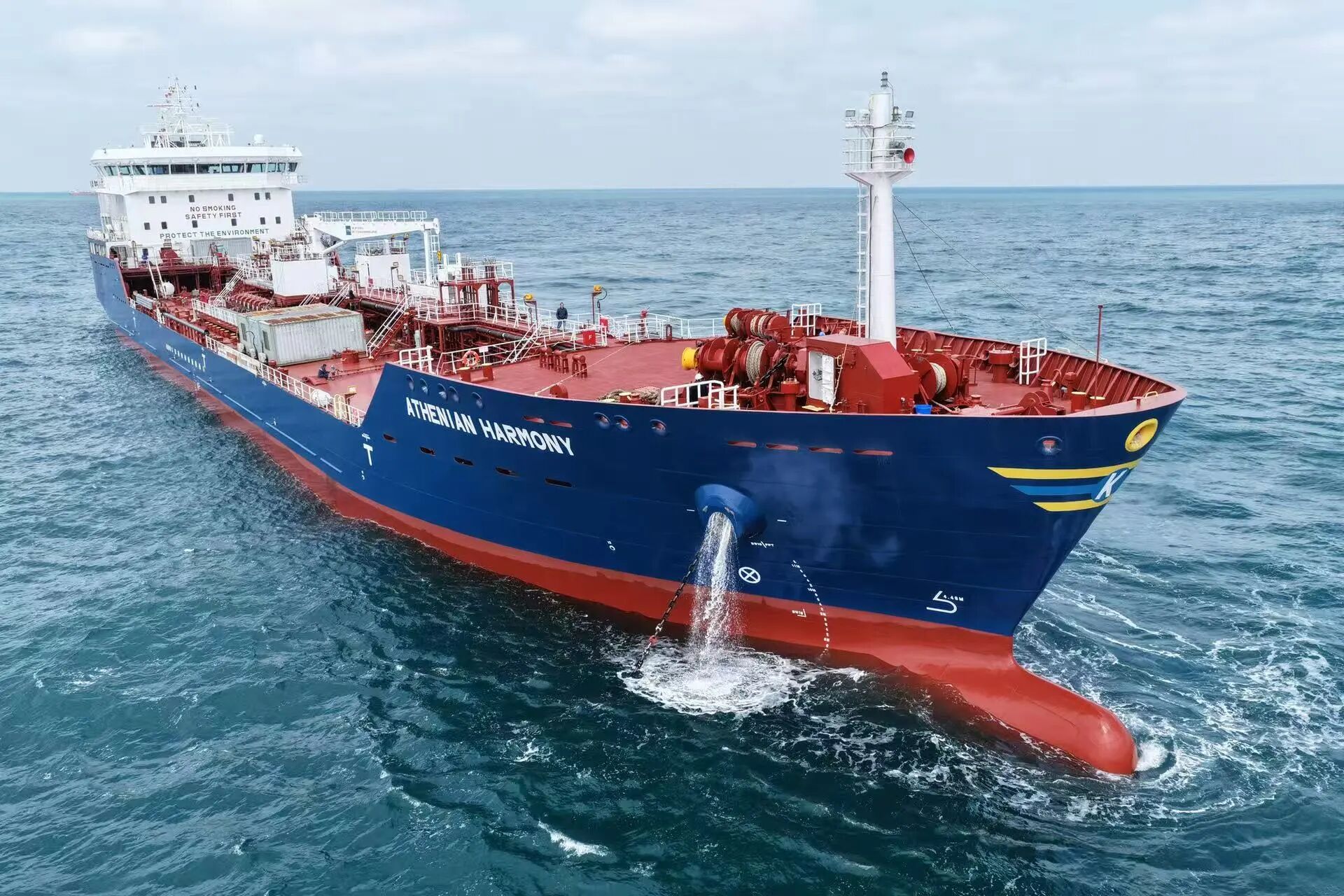 由武昌造船為希臘Athenian Sea Carriers公司建造的18500載重噸成品油/化學品船5號船順利完成海試任務,安全返回碼頭。